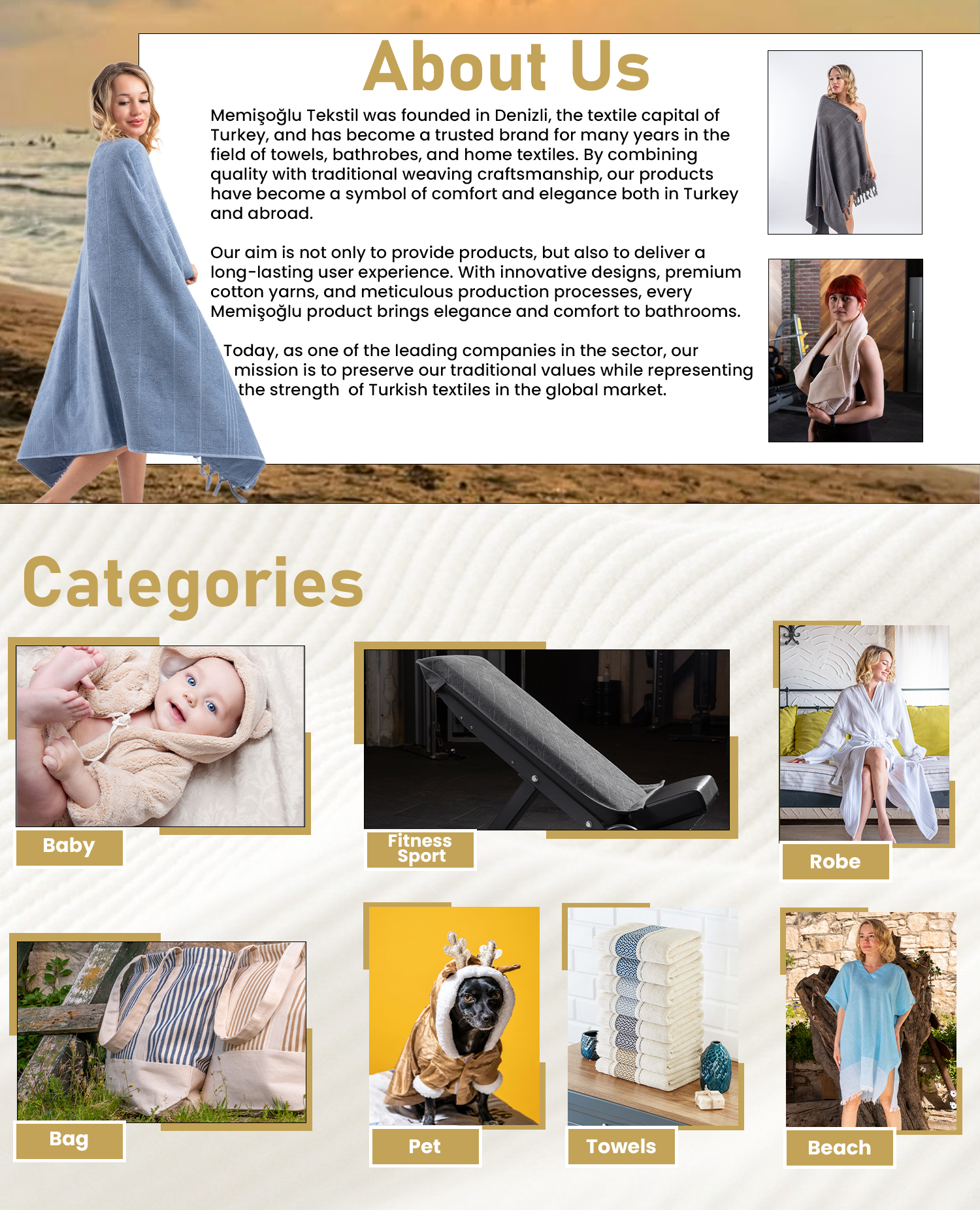 Productos principales:Spa y saunwear, ropa de playa, toalla, albornoz, Spa y uniformes de Sauna